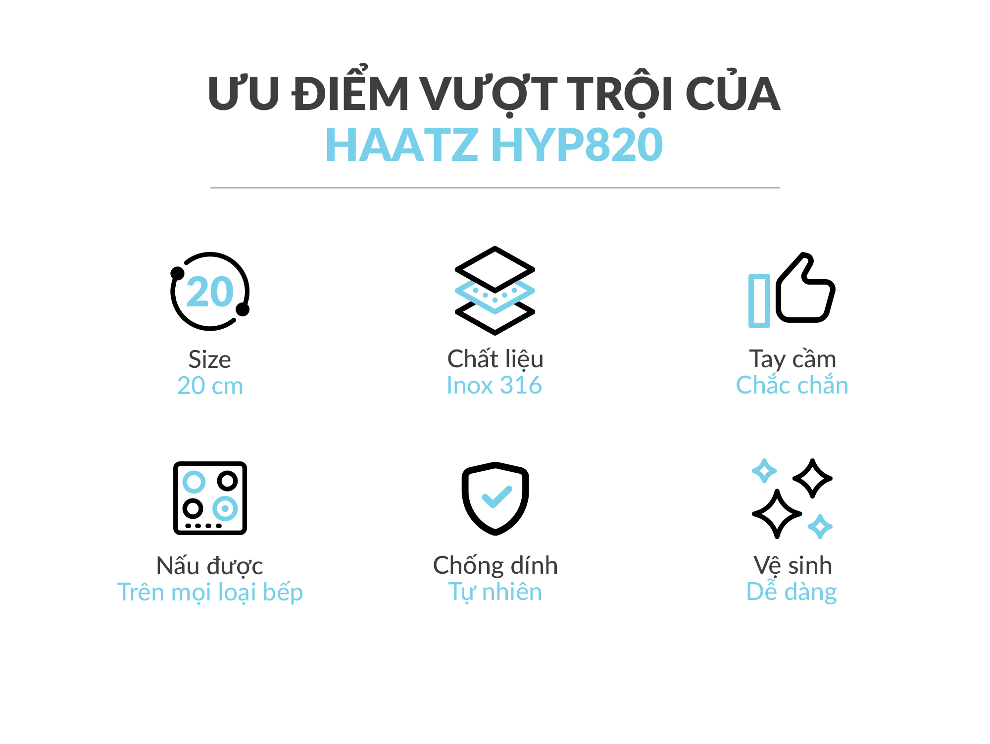 Chảo inox 316 liền khối, cạn lòng, size 20cm