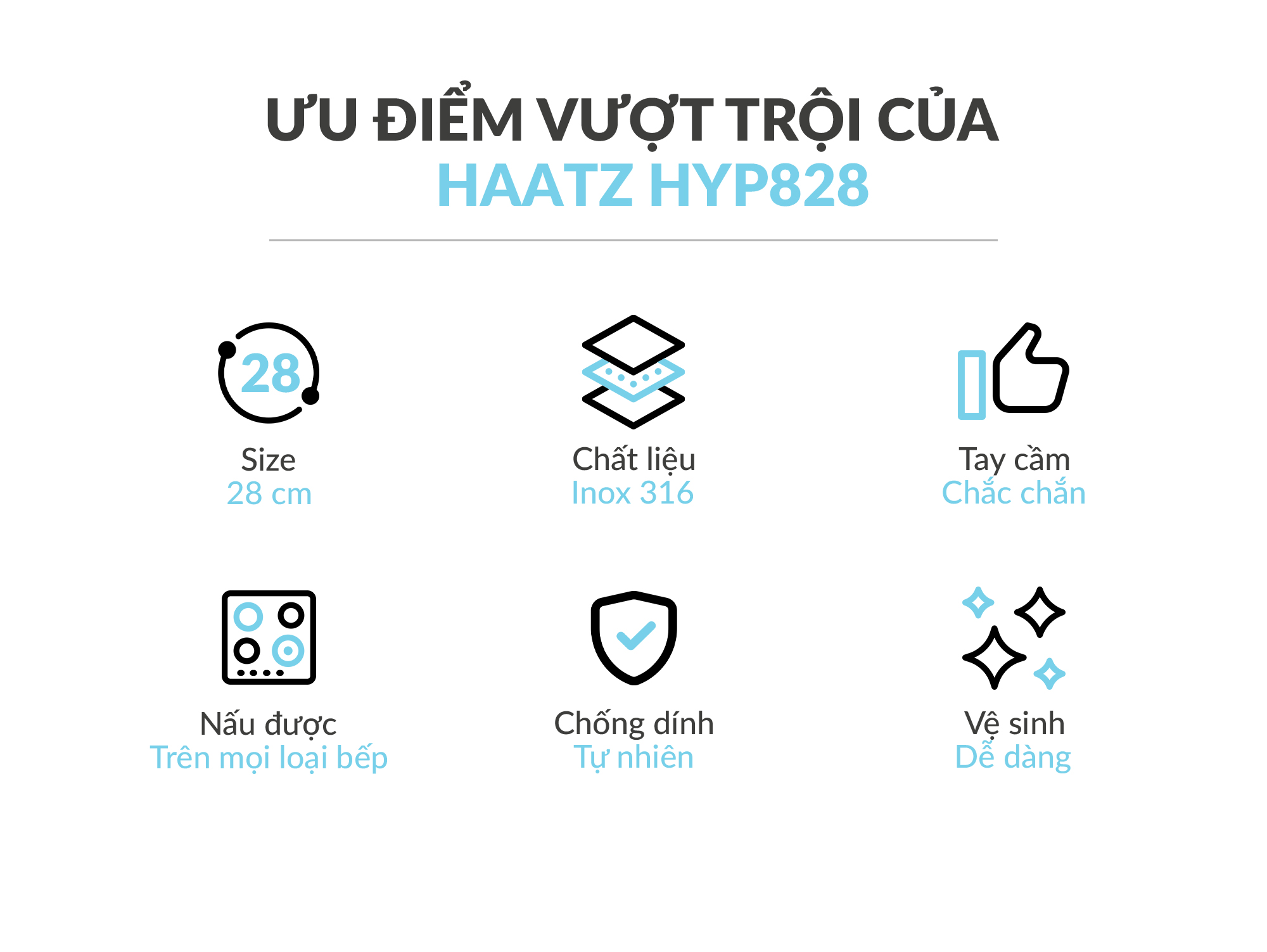 Chảo inox 316 liền khối, cạn lòng, size 28cm