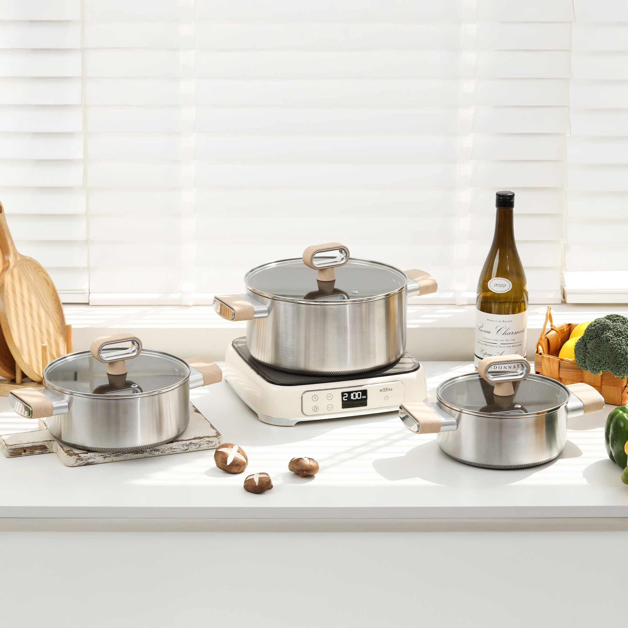 Bắt nhịp xu hướng này, Haatz phát triển dòng Titanium Aura với cấu tạo 7 lớp liền khối, kết hợp tinh thể Titanium Aura và inox 316 chuẩn y tế, nhôm dẫn nhiệt và inox 430 bắt từ, tạo nên bộ sản phẩm vừa siêu chống dính, vừa an toàn và tương thích mọi loại bếp.