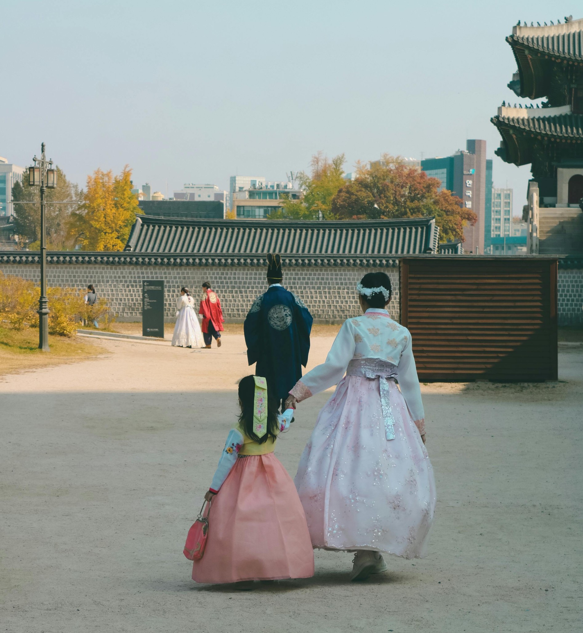 Thuê Hanbok dạo cung: Là con gái, cảm giác được khoác Hanbok đi giữa rừng ngân hạnh vàng hay lá phong đỏ tại Gyeongbokgung… vừa thanh lịch, vừa cổ tích. Minji thường chọn Hanbok màu pastel nhẹ nhàng cho hợp cảnh thu.