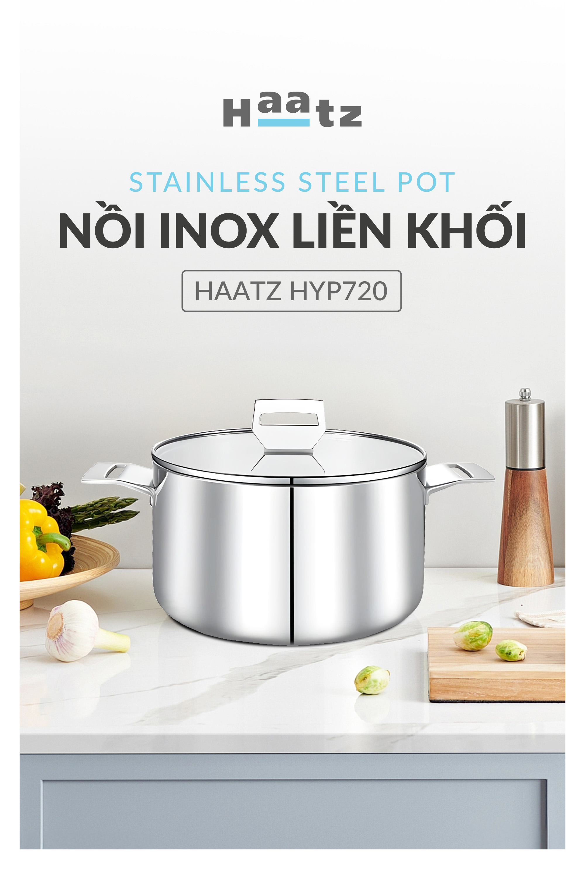 Nồi inox 316 đúc liền khối, size 20cm