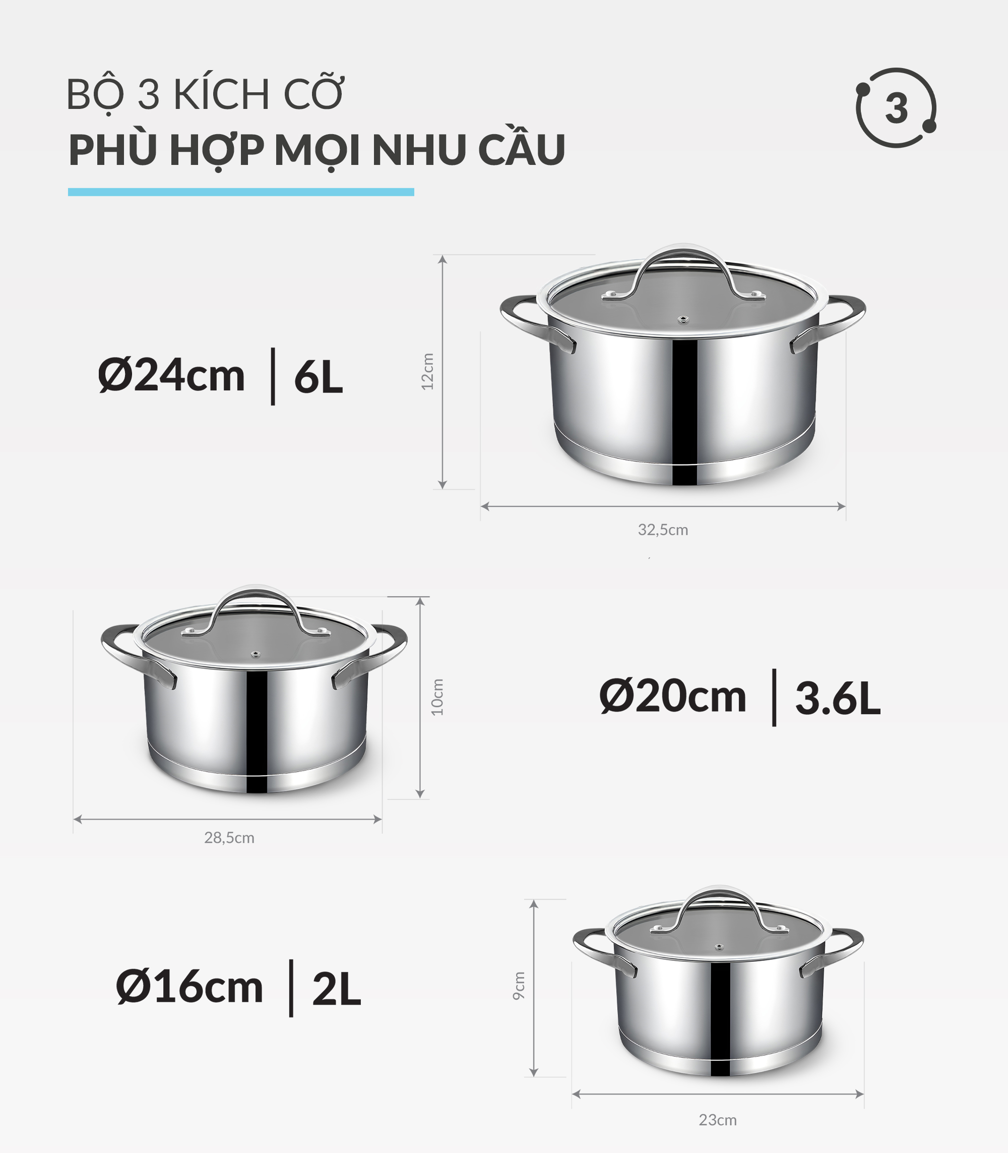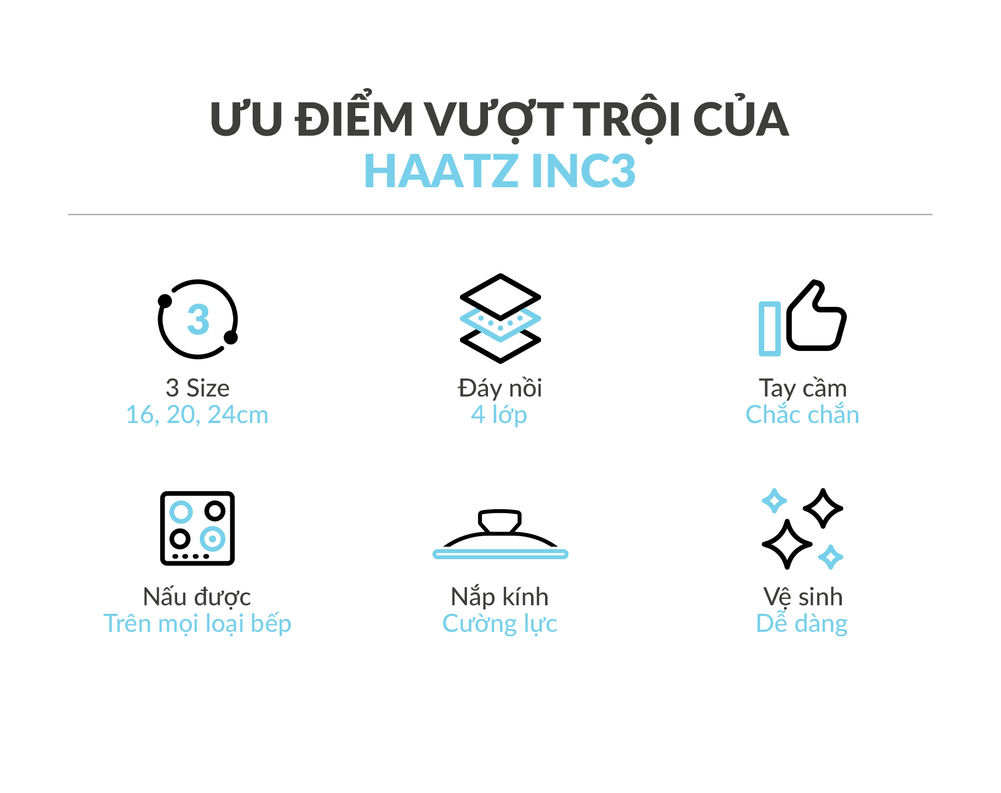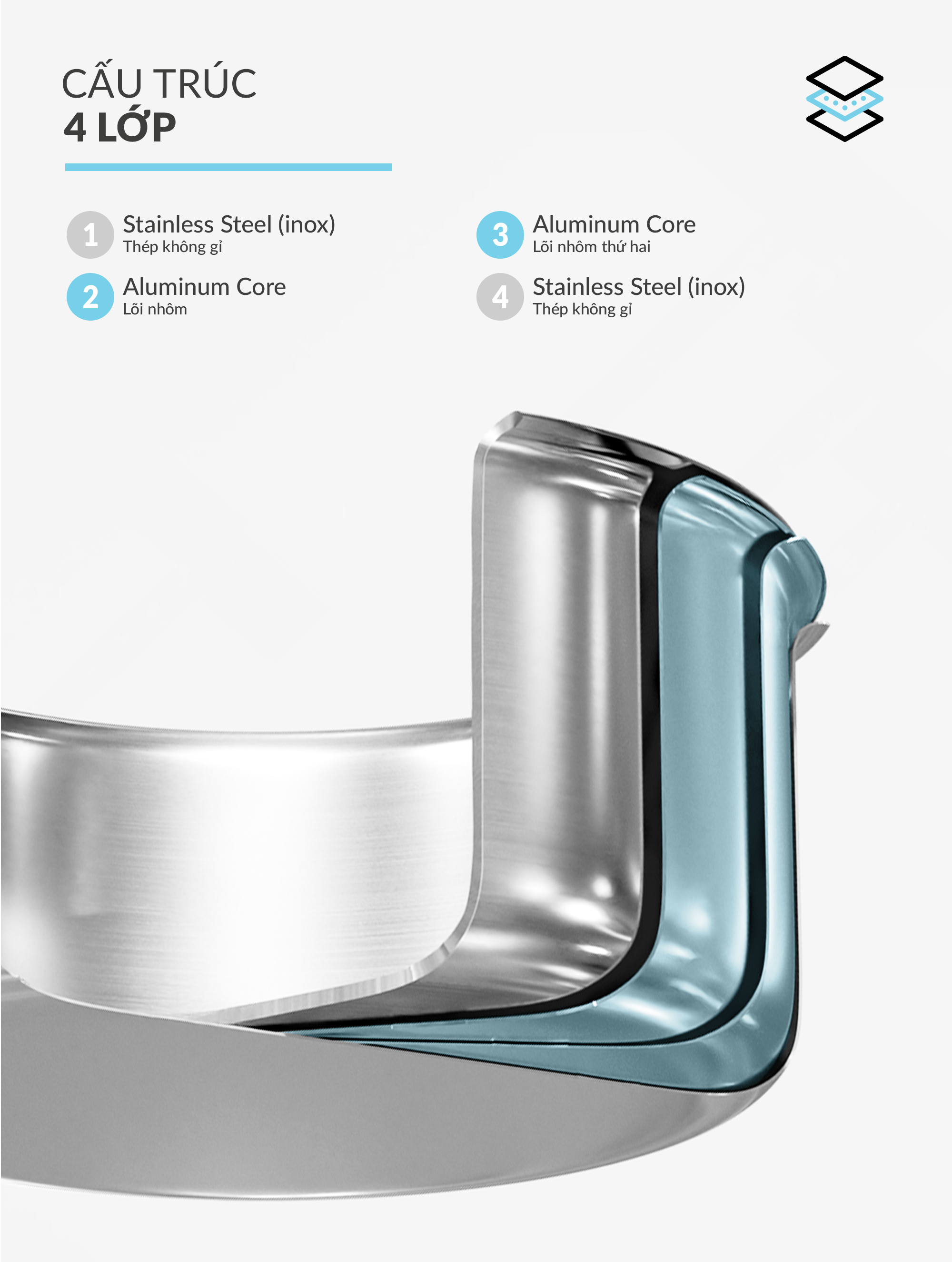 • Chất liệu: cấu trúc 4 lớp inox và lõi nhôm dày giúp gia nhiệt đều