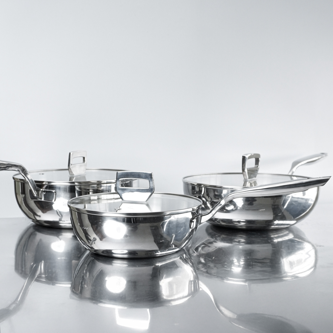 Vẻ đẹp của bộ 3 chảo sâu lòng, inox 316 từ Haatz